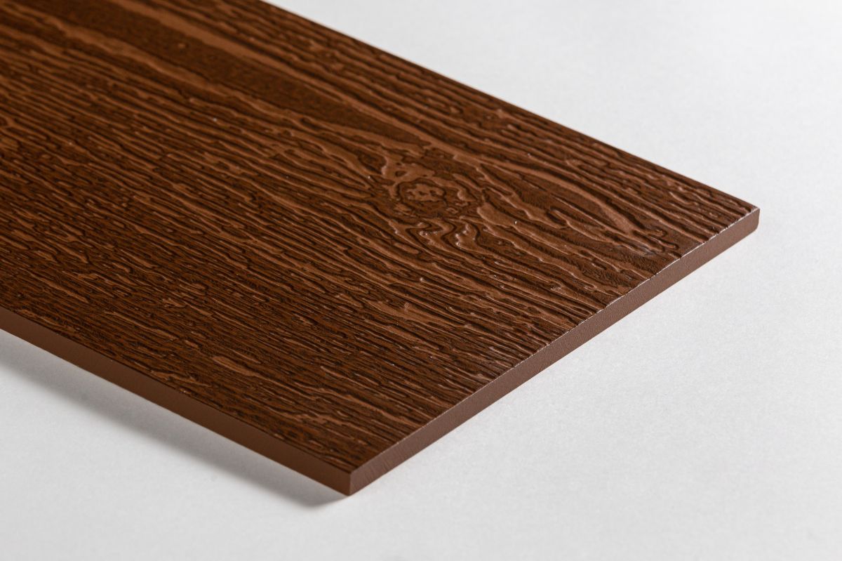 Читать все статьиСайдинг-панель фиброцементная окрашенная структурная МАХАГОН (RAL8024/RAL8014) LATONIT 3000x200x8